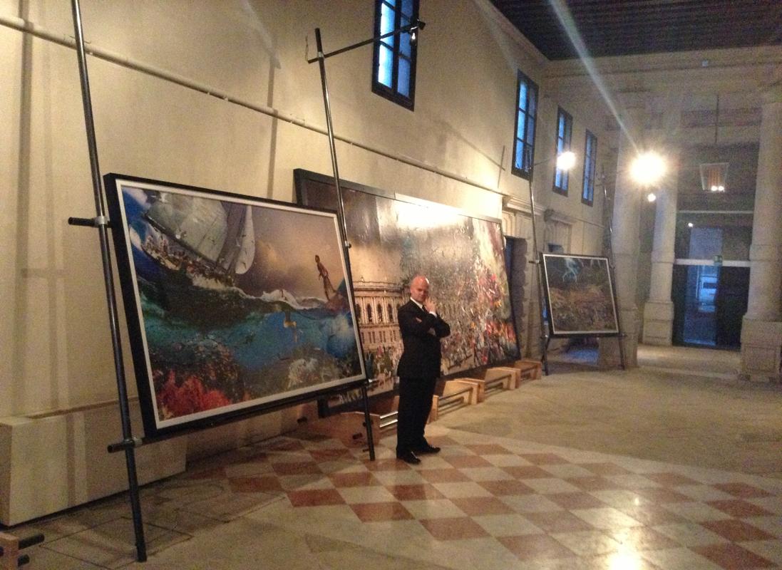 La mostra-evento nel grande salone di un palazzo sul Canal Grande prevedeva l'esposizione dei quadri di grande formato dell'Artista inglese David Mach, per i quali abbiamo approntato dei supporti autoportanti in legno di larice e tubolari in acciaio, di diverse lunghezze e altezze, disegnati a misura e che includevano anche il sistema di illuminazione.