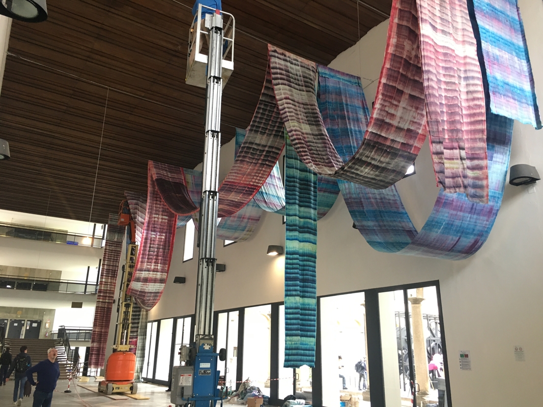 Progetto esecutivo e ingegnerizzazione dell'Installazione dell'Artista Gianluigi Colin per Interni FuoriSalone 2023, Hall dell'Aula Magna, Università Statale di Milano-Ca' Granda. Partendo dalle idee dell'Artita e in un dialogo con esso, Ci siamo occupati della definizione architettonica, dell'ingegnerizzazione e della realizzazione dell'installazione, costituita da drappi di lunghezza fino a 70 metri sospesi a cavetti di acciaio posti alle quote di 7 e 10 metri. E' stata inoltre predisposta una iluminazione aggiuntiva, sospesa sopra i drappi, grazie ai cavetti di sostegno di questi ultimi e ad alcuni cavetti integrativi.